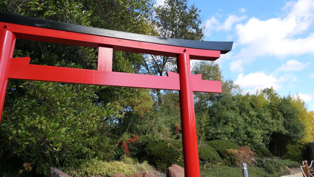 Our torii marks the entrance to the garden’s mountain and the realm where its kami resides.
