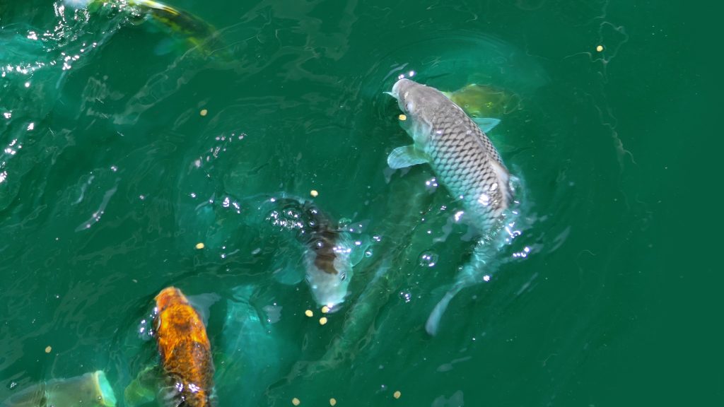 Years of predation by the local birds and otters have weeded out most of the colorful ones, but if you’re lucky, you still might catch a glimpse of silver or gold flashing in the depths.