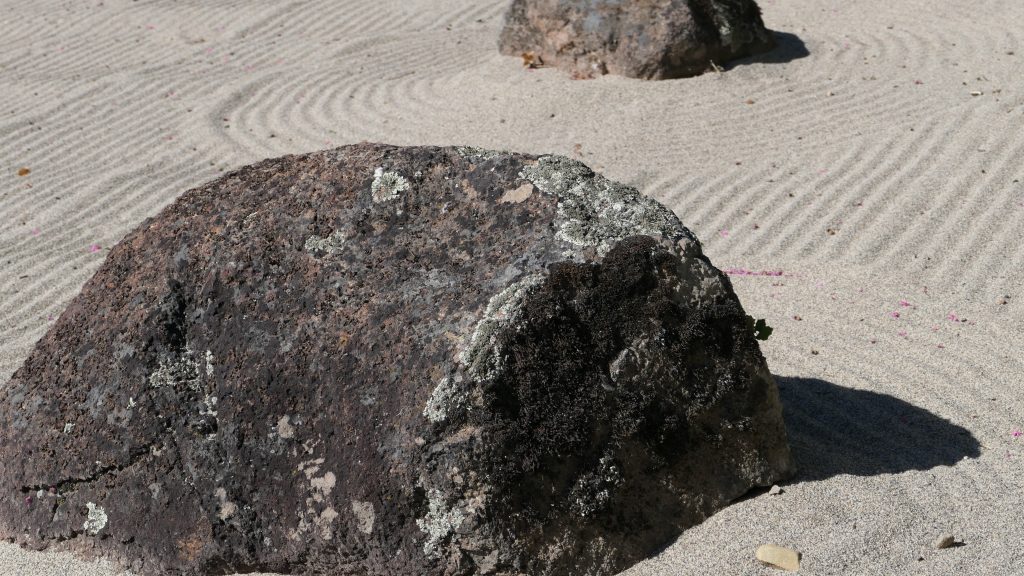 Also sometimes referred to in English as Zen gardens, Japanese rock gardens evoke the image of islands in an ocean. Boulders are carefully selected and placed to represent islands, and sand is used to represent water. The sand is then raked to mimic the pattern of waves and ripples on the water’s surface.